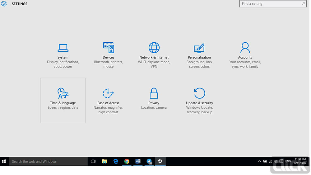 اکنون در صفحه Settings گزینهی Time & language را انتخاب کنید.