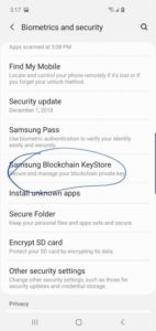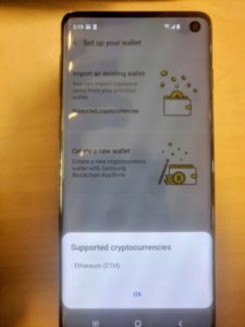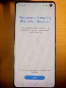در این تصاویر صفحه ابتدایی اپلیکیشن Samsung Blockchain KeyStore به چشم می خورد. کاربران توسط این اپلیکیشن می توانند کیف پول جدید ایجاد کنند و یا کیف پول قدیمی خود را به آن منتقل کنند.